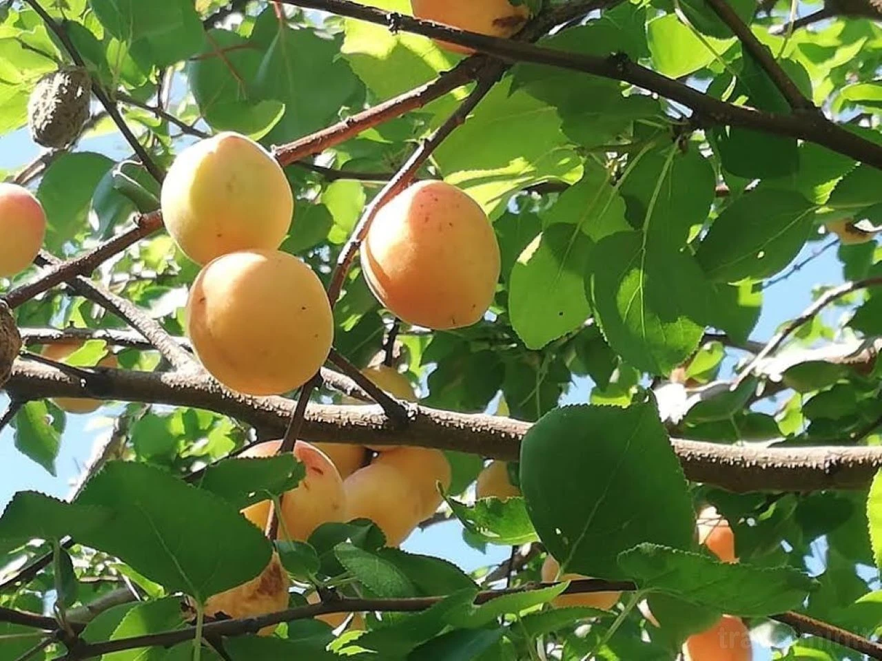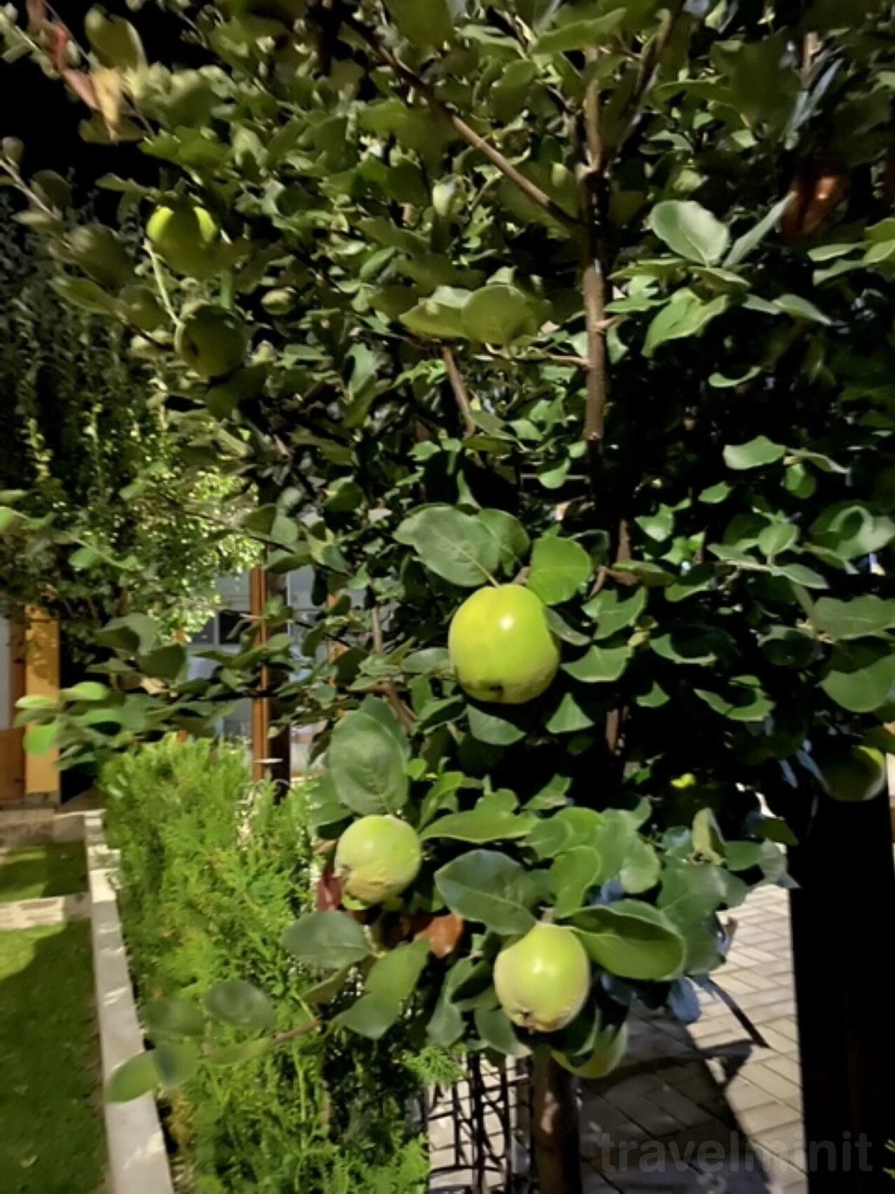 - A kertben különálló bungalók, gyümölcsfák árnyékában