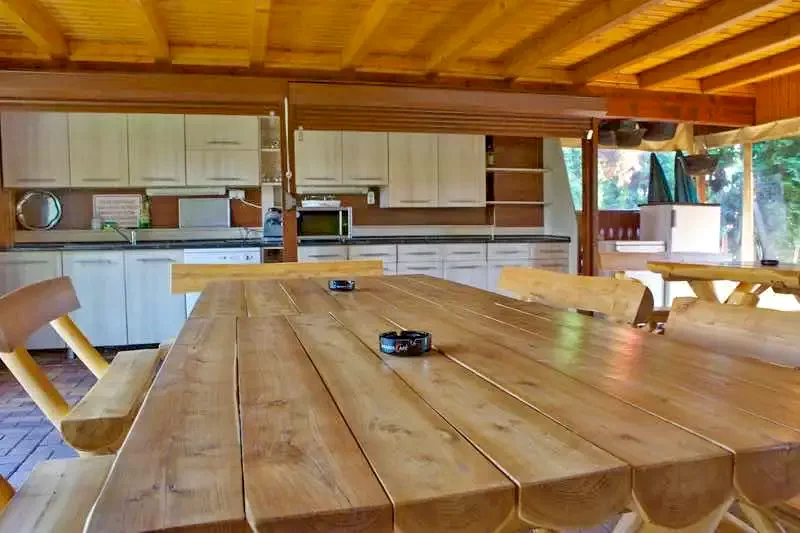 - jól felszerelt konyha (gáztűzhely, mikrohullámú sütő, hűtőszekrény, tányérok, evőeszközök stb.)
