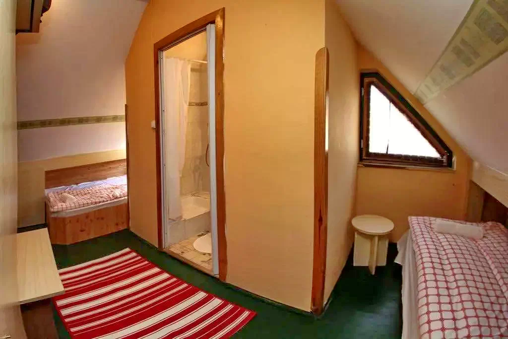 3-as szoba (2 fős): A szoba 2 külön ágyas, alapesetben összetolva. TV és ingyenes WIFI használat biztosított. A fürdőszoba a 4-es szobával közös légtérből nyíló előtérből a 4-es szobával közösen használható. Amennyiben 2 ágyas szobaként foglalják le, úgy a 4-es szobát más részére nem adjuk ki egyazon időpontban.