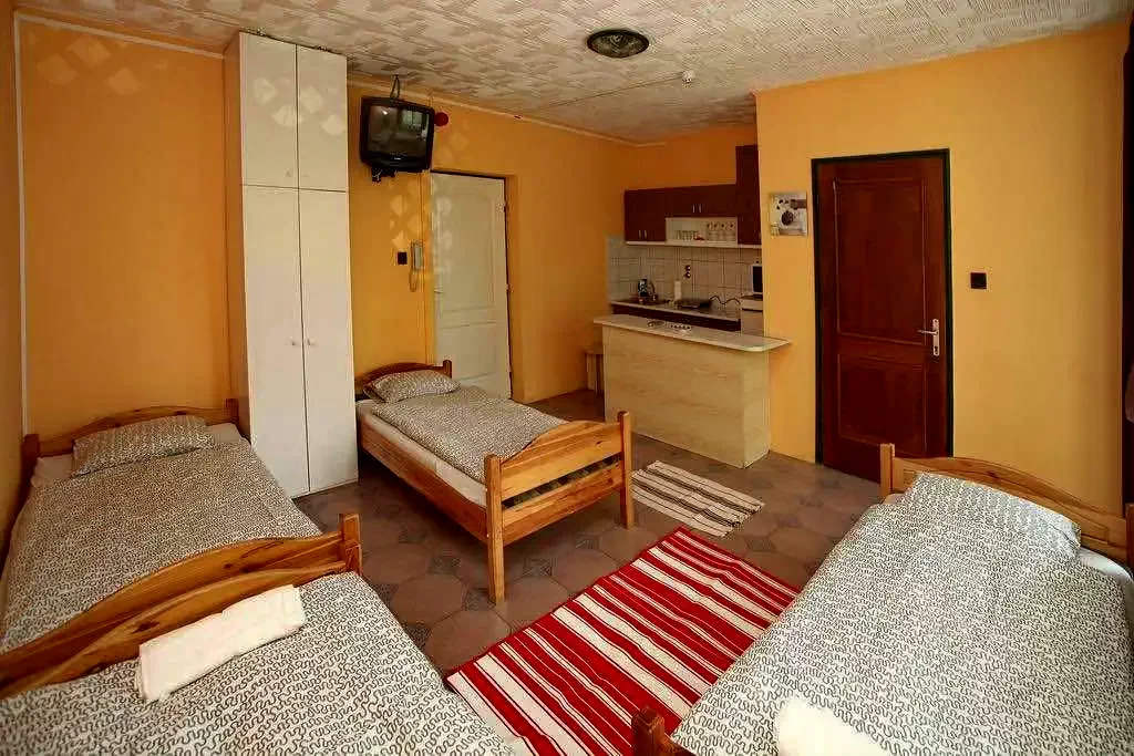 2-es apartman (6 fős, pótágyazható): Galériás 6 fős apartman 6 külön ággyal, melyből 2-2 összetolható. A szobában főzőfülke van, hűtőszekrénnyel, mikrohullámú sütővel, vízforralóval, indukciós főzőlappal, vagy villanyrezsóval, edényekkel. A szobához saját fürdőszoba, TV és ingyenes WIFI használat biztosított.