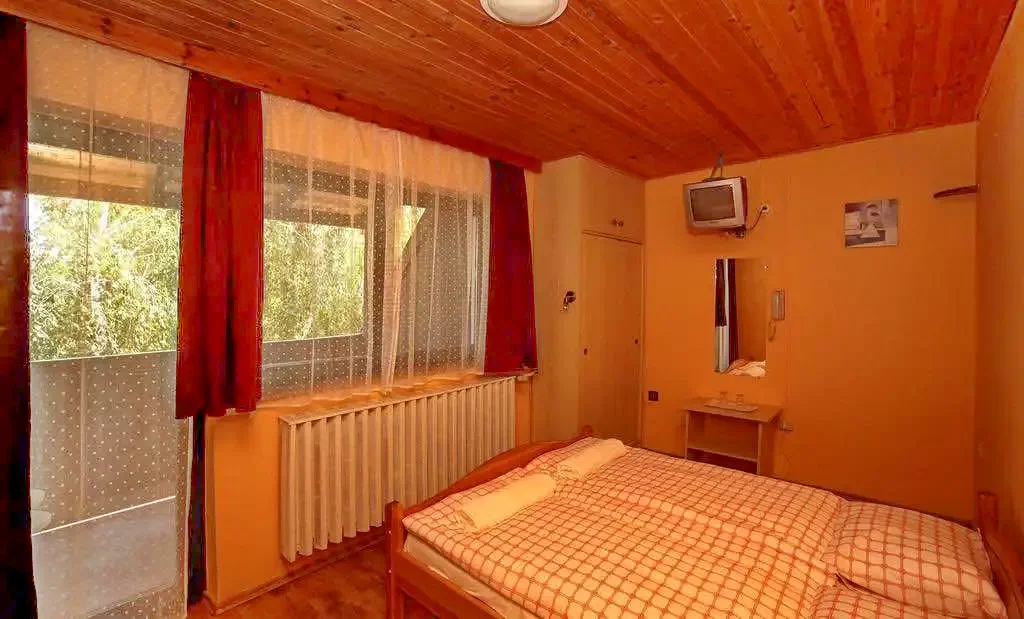 7-es szoba (2 fős, pótágyazható): Erkélyes, franciaágyas szoba 2 fő részére. A szobához saját fürdőszoba, TV és ingyenes WIFI használat biztosított.