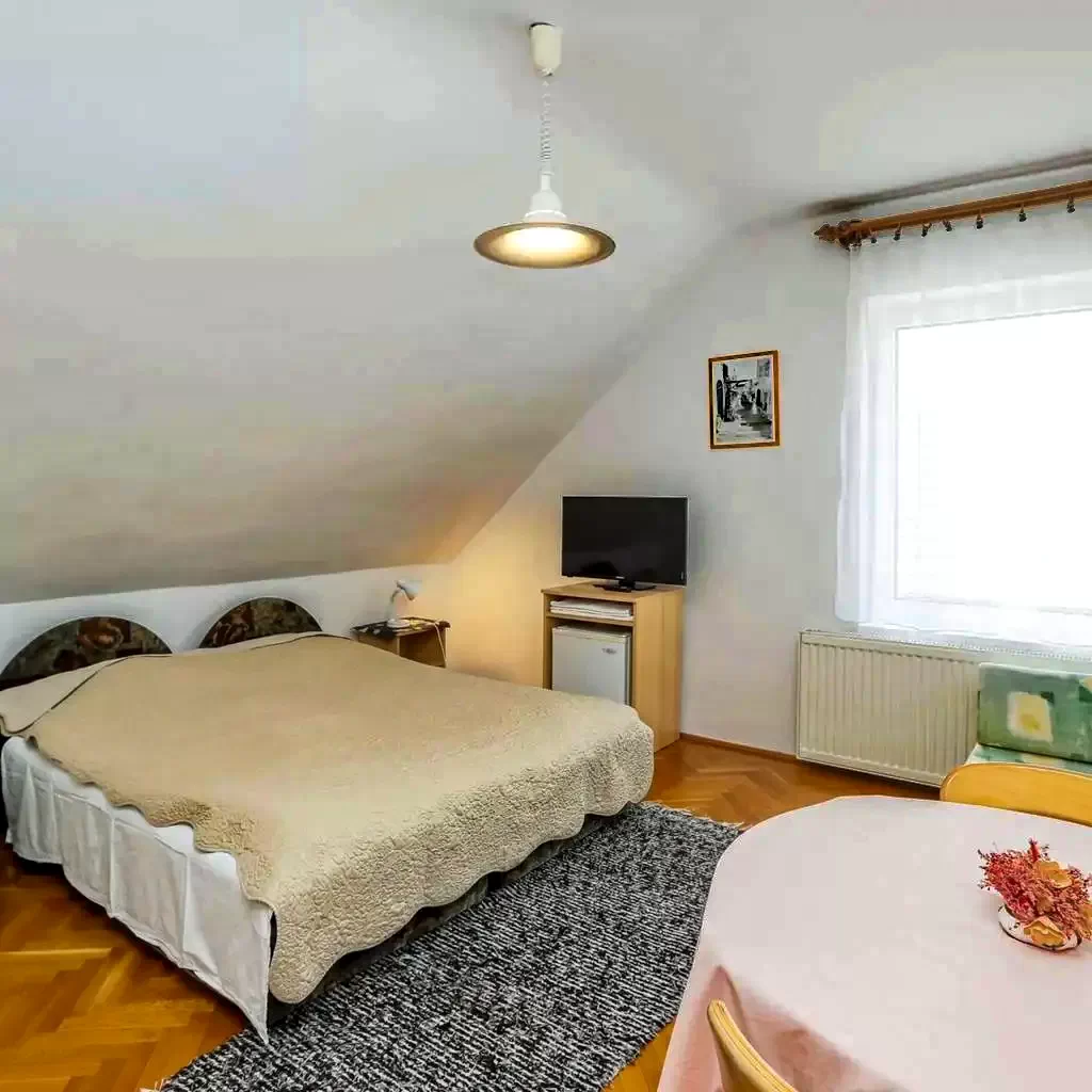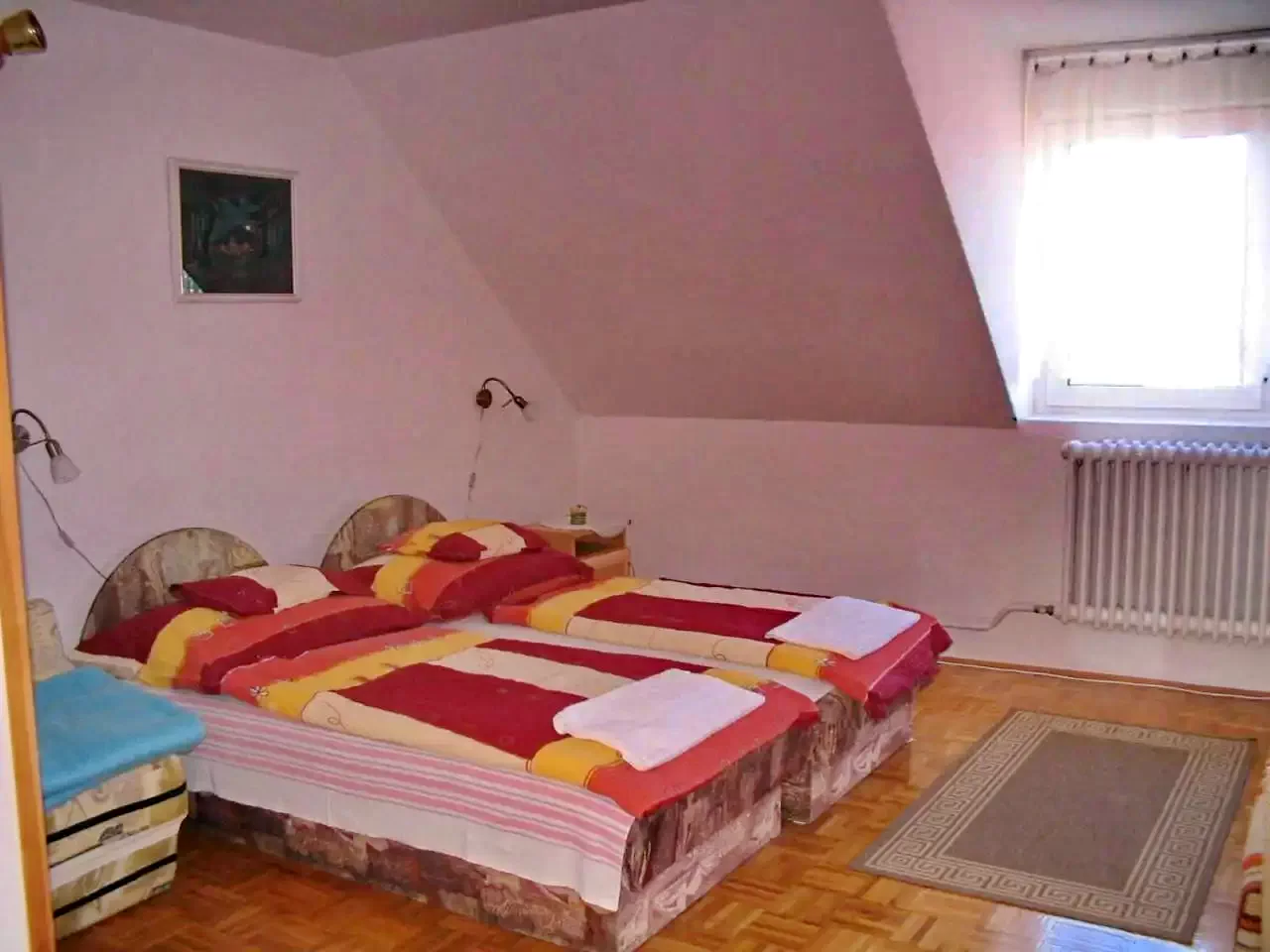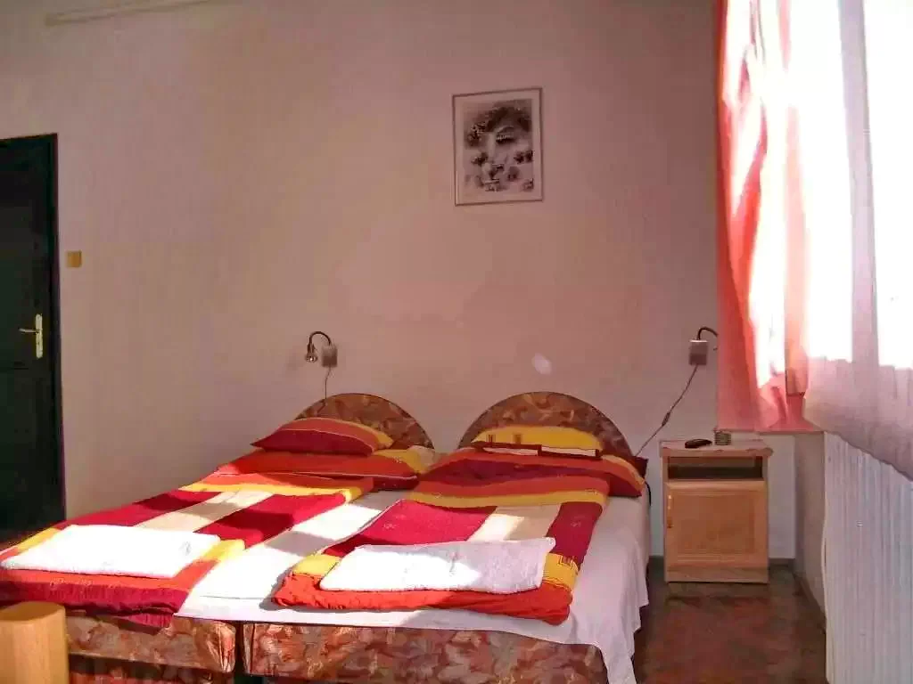 Csendes kertvárosi környezetben zárt parkoló, fürdőszobás, színes tv-s szobák állnak a vendégek rendelkezésére. Az épület alsó szintjén a vendégek számúnak megfelelő étkező, nappali rész és konyha, szolgálja a kisebb nagyobb csoportok és családok kényelmes együttlétét. Itt a számitógépekhez internetes kapcsolatként WIFI használható. A vendégek igénye szerint természetesen reggelit biztosítunk.