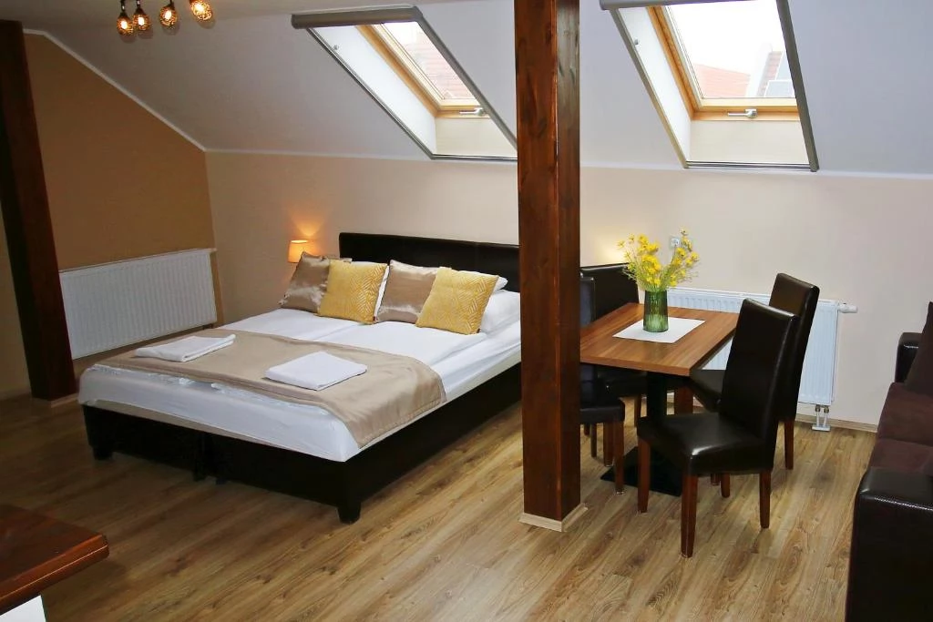 5 db 4 fős egy légterű apartman saját fürdőszobával és konyhasarokkal