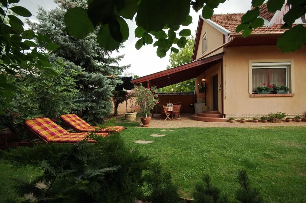 - Parkosított pihenórász várja a vendégeket, kerti székekkel, asztalokkal, hinta- és napágyal