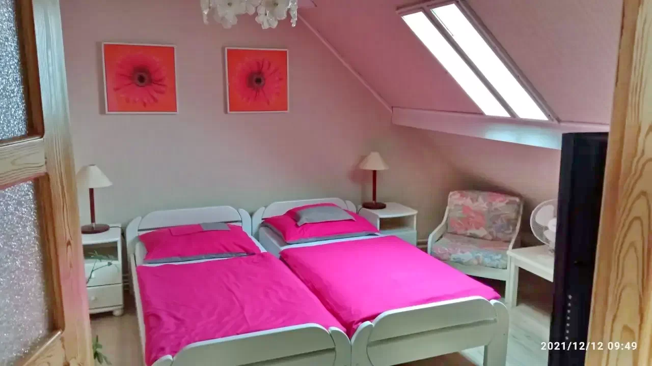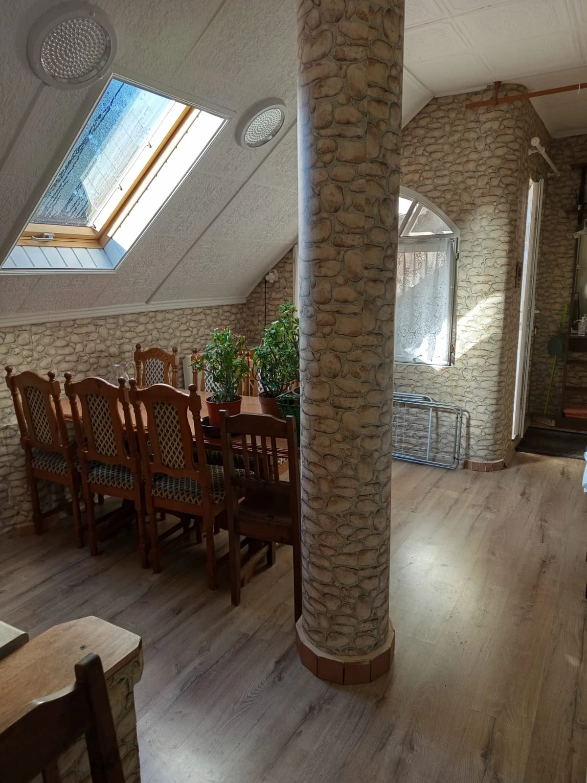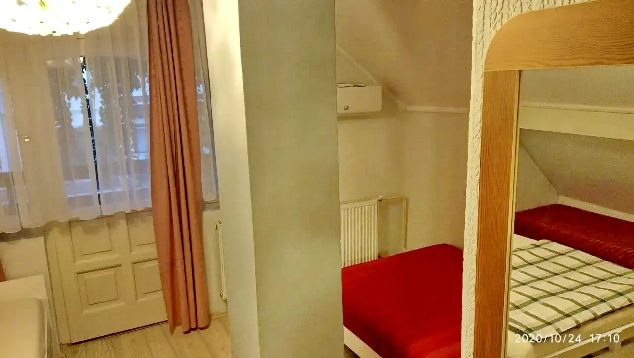 az emeleten egy 6 fős lakosztály 3 hálótérrel és 2 fürdőszobával