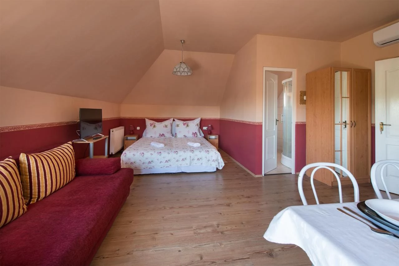 3 db 2+2 fős studió apartman, hálószoba, saját felszerelt konyha nappalival és fürdőszoba