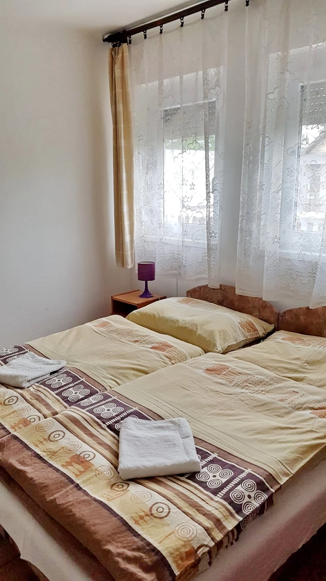 - földszinti apartman: 2 külön szoba, 1 felszerelt konyha, saját fürdőszoba, fedett terasz