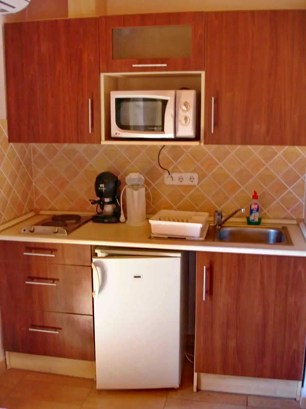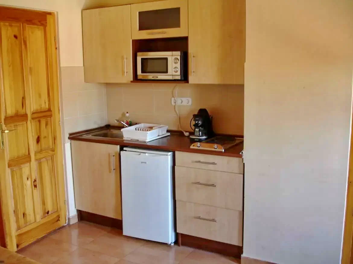 teljesen felszerelt konyha hűtőszekrénnyel, beépített főzőlapok,kávéfőző
