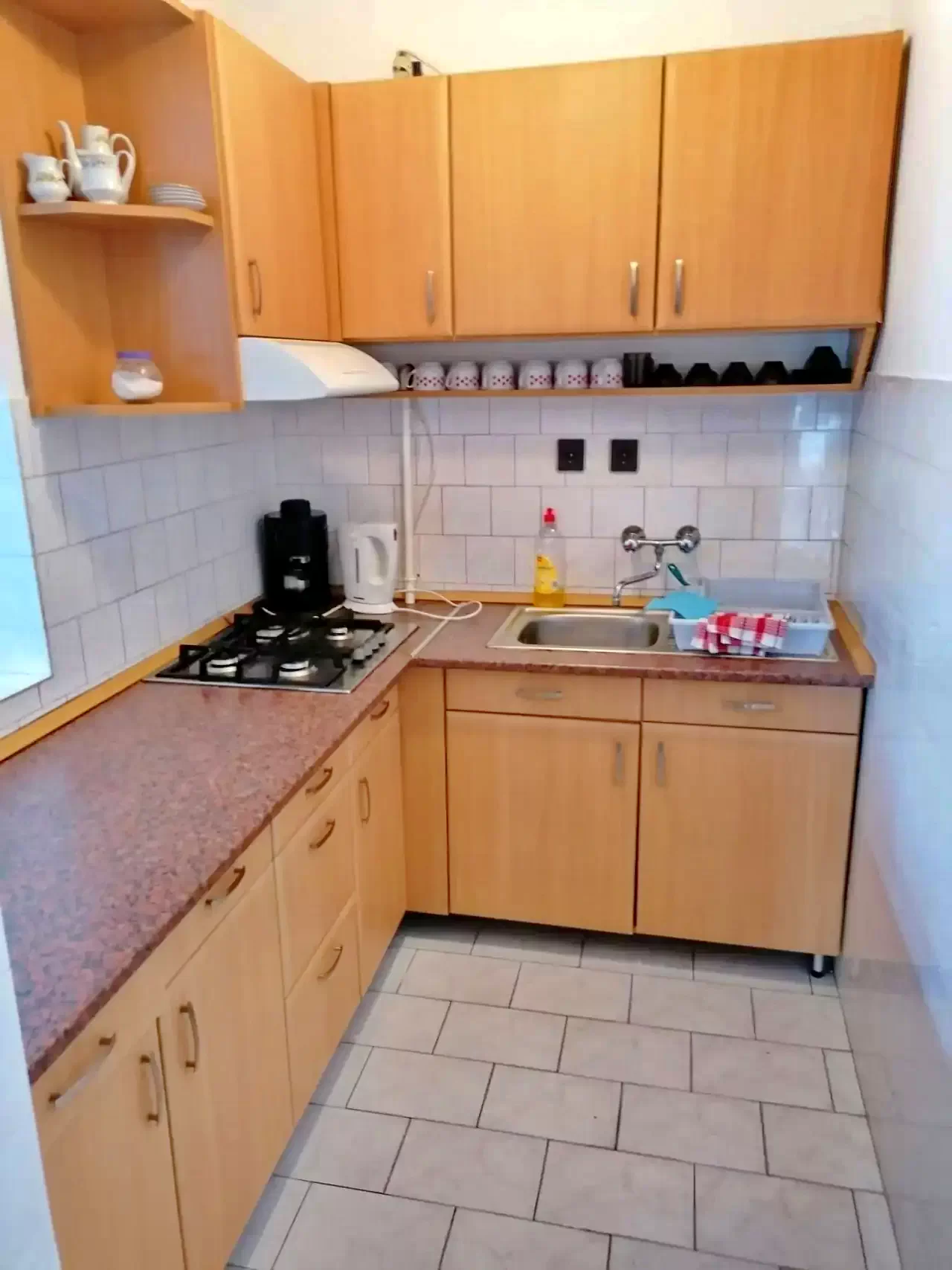 - teljesen felszerelt konyha hűtőszekrénnyel, beépített főzőlapok, kávéfőző