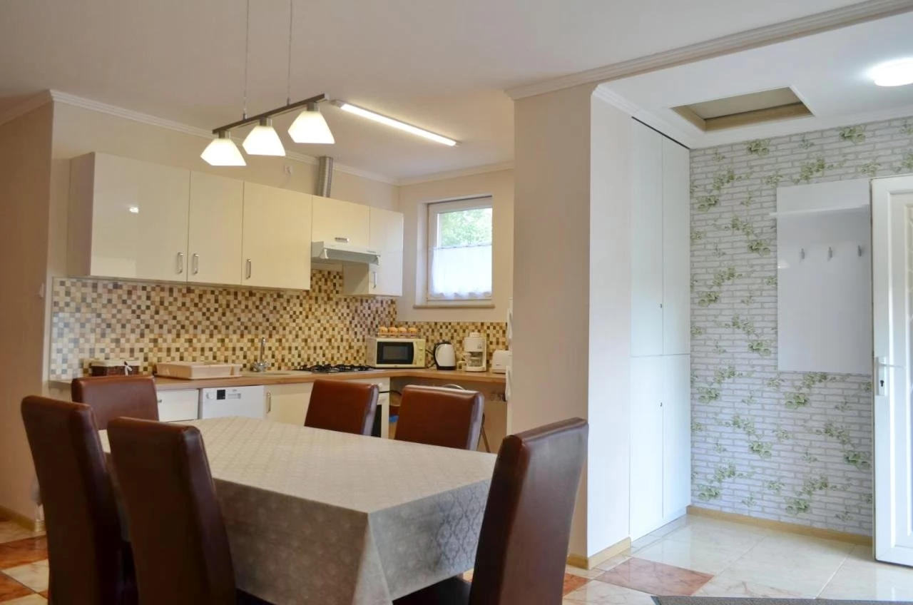 Felszereltség: Közös fürdőszoba káddal, zuhanyzóval és mosógéppel, 2 különálló WC, jól felszerelt konyha.