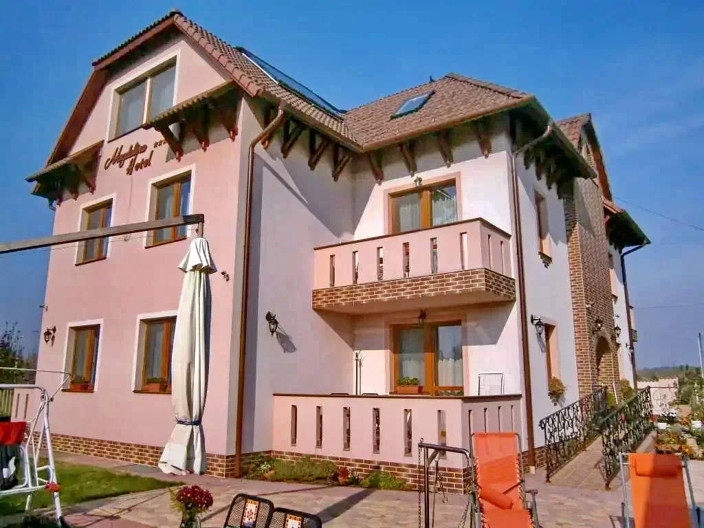 A hotel hívogató jellegét a mediterrán stílus és a virágokkal övezett környezet adja. Három szinten összesen 23 különböző színhatású és stílusú szoba várja a vendégeket. A szobákban televízió, hűtőszekrény és wifi internetcsatlakozás áll a vendégek szolgálatára. Az épületben lift is található. Az udvaron mobil kemence, szalonnasütő, bográcsozási lehetőség kedvez a sütni, főzni vágyó vendégeknek.
