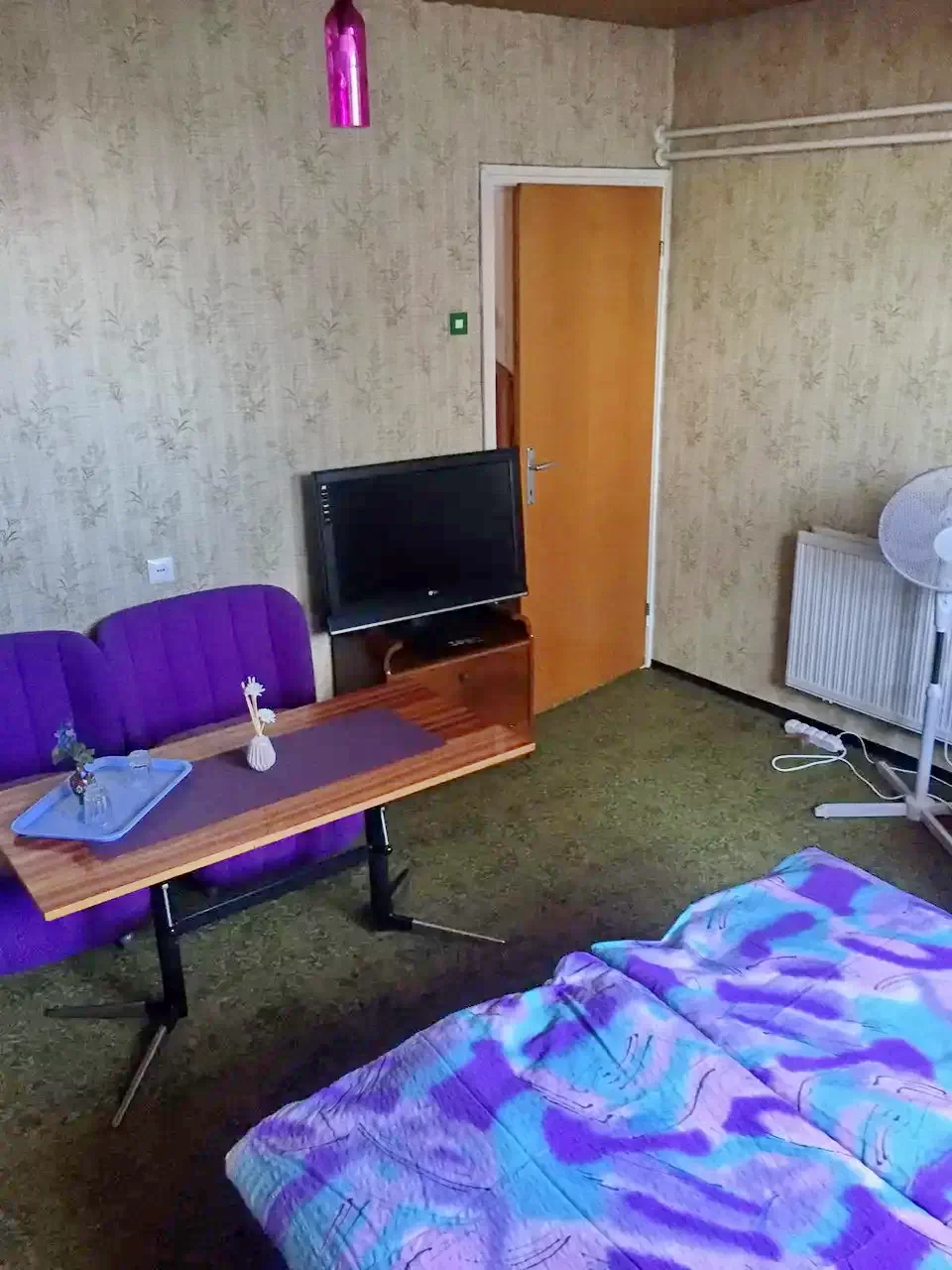 - Egy wc, egy 3 ágyas szoba (lila szoba), egy teraszos, 4 ágyas szoba( nagy piros)