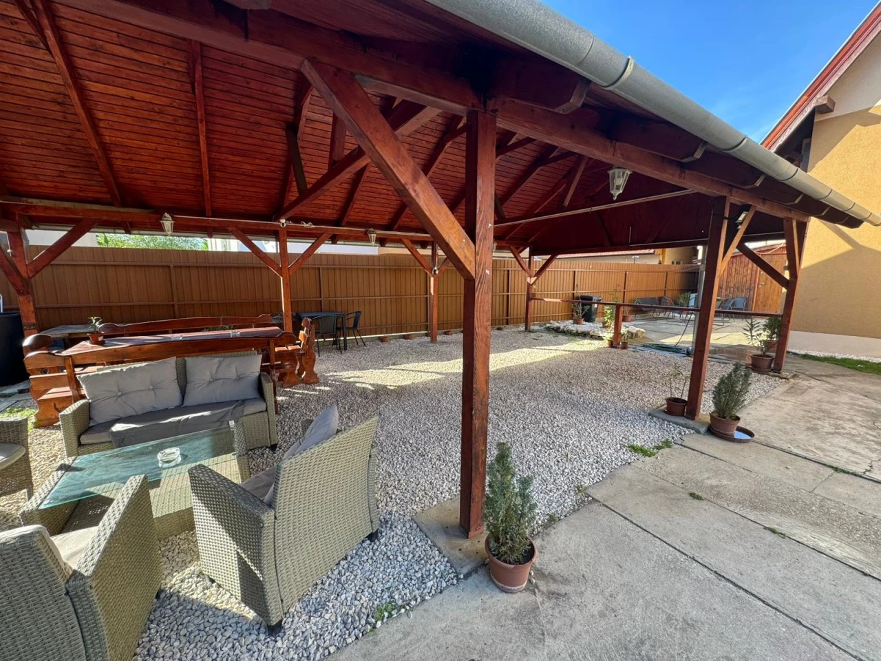 - 1 db emeleti saját bejáratú apartman: 4 szoba, 4 fürdőszoba, saját konyha és étkezővel.