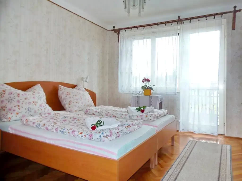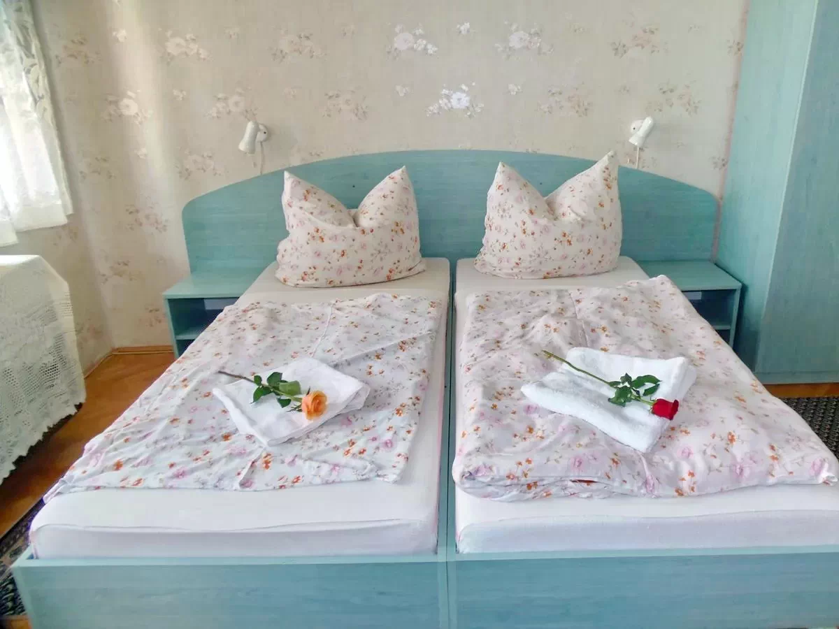 A ház kétszintes családias jellegű 7 darab kétágyas pótágyazható szobákkal, zárt udvarral várja a pihenni vágyókat. Az udvaron kerti bútorok, grillező is megtalálható. A földszinten 2 szoba, nappali, étkező, konyha fürdőszoba, külön WC található. Az emeleten 3 db 2 ágyas pótágyazható szoba, fürdőszoba, WC található. A tetőtérben 2 db franciaágyas szoba várja a kedves vendégeket. A konyha teljes felszereltségű, tűzhellyel, hűtőszekrénnyel, kávéfőzővel, edényekkel. A ház kitűnően alkalmas nagyobb baráti társaságok, családok kényelmes elszállásolására.