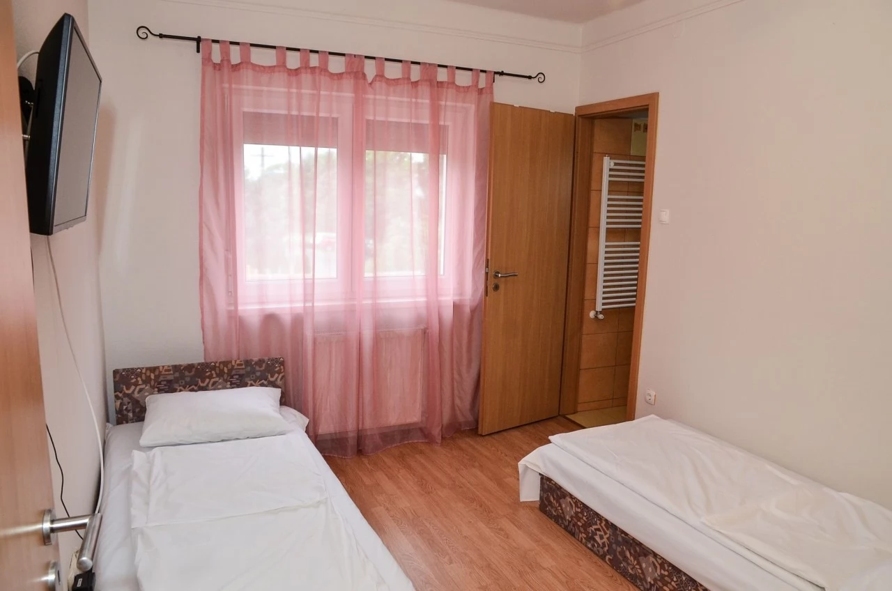 7. apartman: 2 db egyszemélyes ágy, saját fürdőszoba, közös konyha