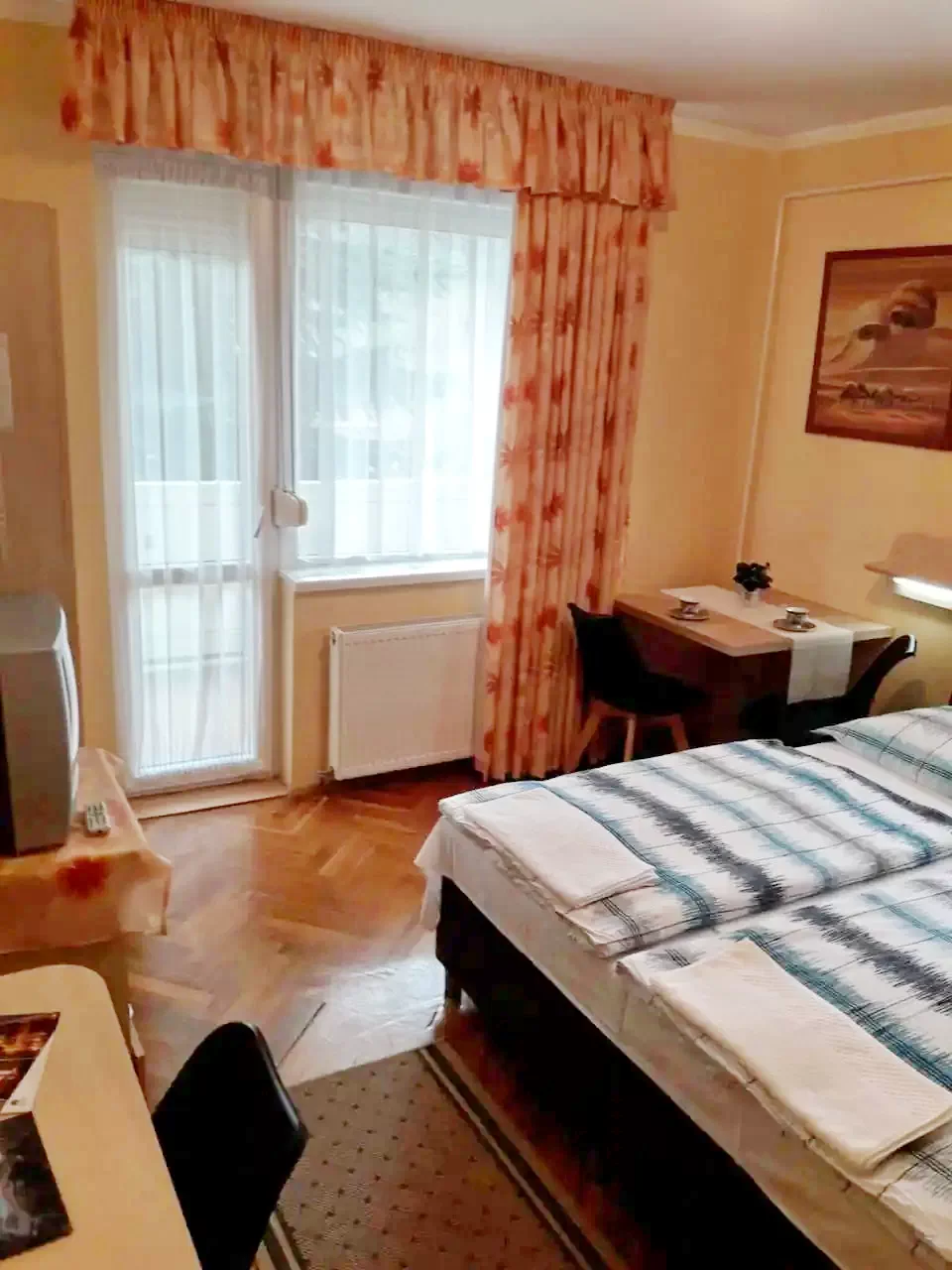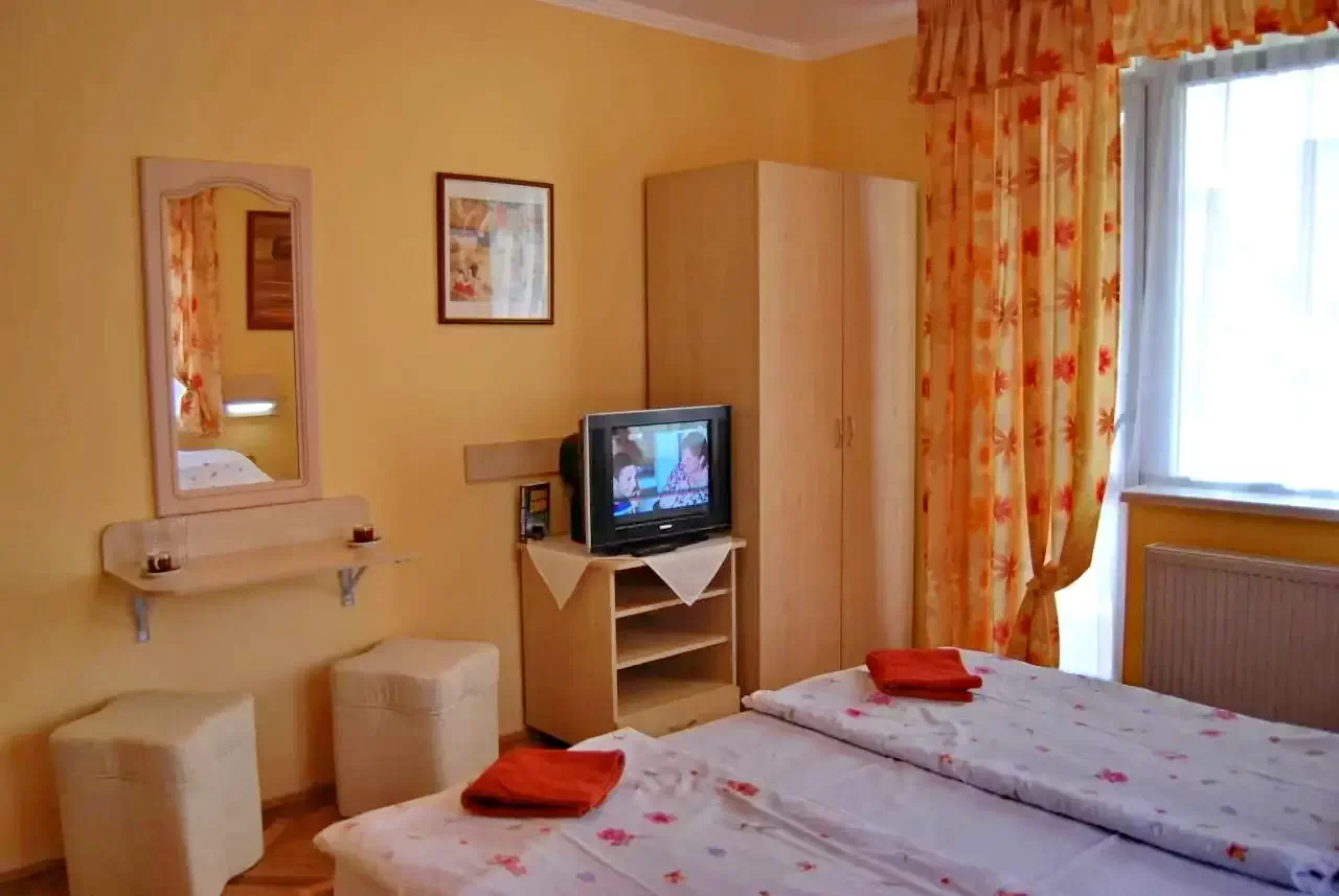 - Szobák Felszereltsége: franciaágy, zuhanyzó, modern bútorok, színes tv, klíma igény szerint, hűtőszekrény, balkon (kültéri asztal és szék)