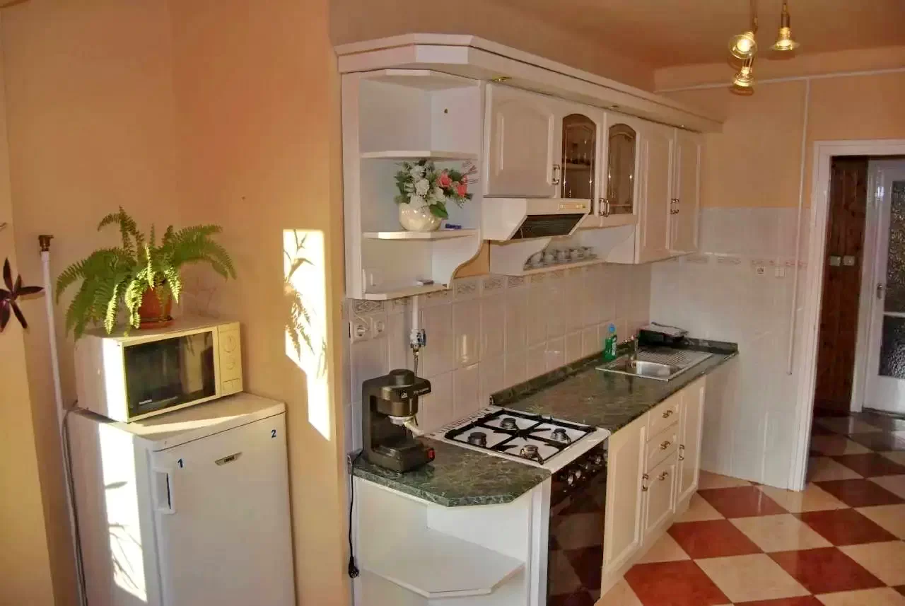 - Konyhánk felszereltsége: hűtőszekrény, tűzhely, páraelszívó, mikrohullámú sütő, melegszendvics sütő, kávé és teafőző, vízforraló, edények, evőeszközök, poharak