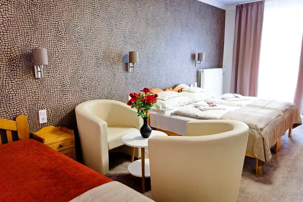 2, 3, 4 ágyas, fürdőszobás, klimatizált, skandináv bútoros, teljesen felszerelt ( LCD TV, hűtő, WIFI, telefon, széf, hajszárító) igényes szobákkal, 24 órás porta szolgálattal,ingyenes zárt parkolóval várjuk kedves Vendégeinket!
