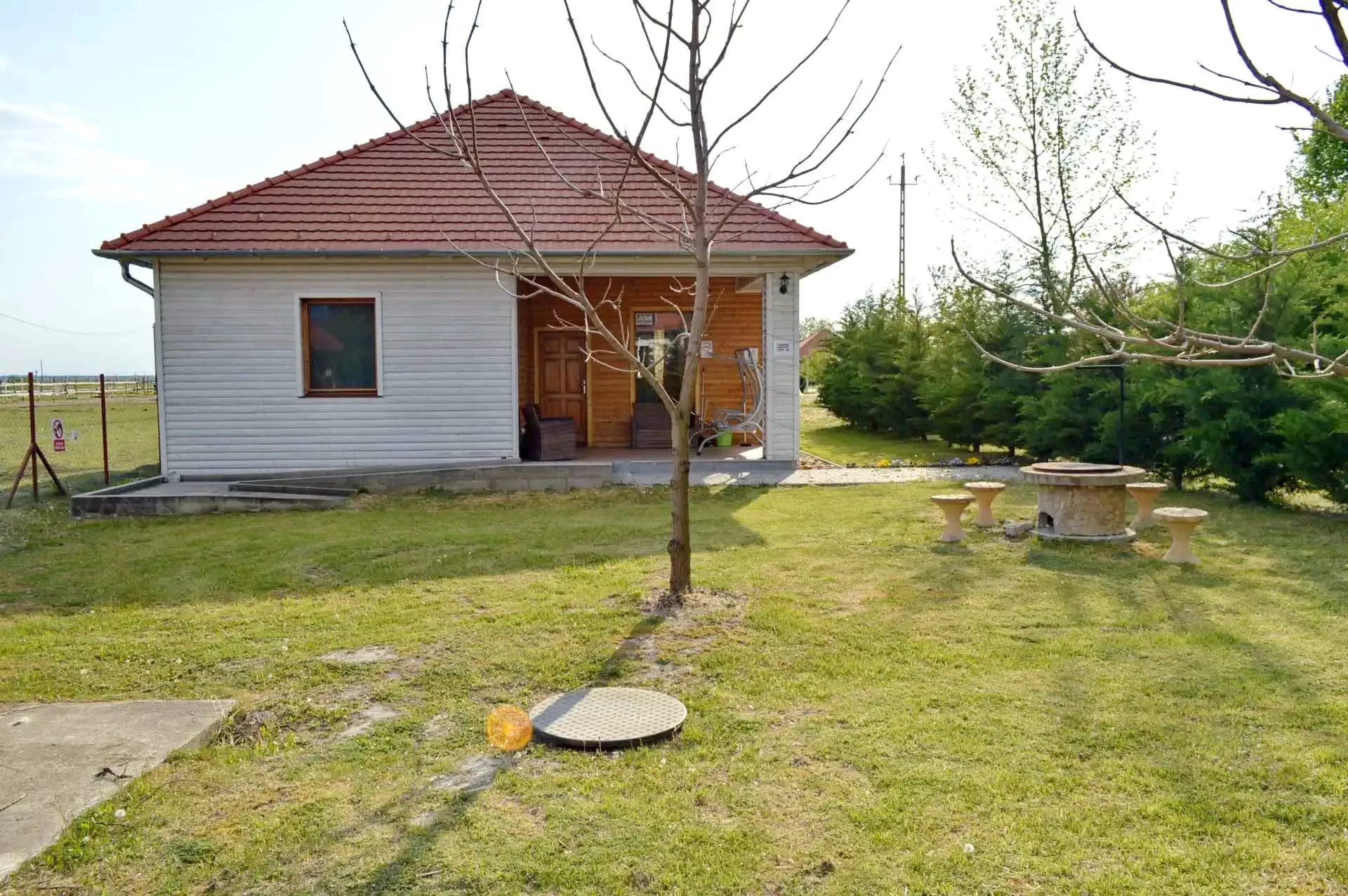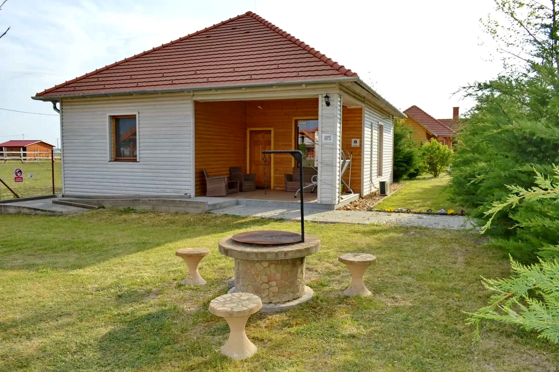 a ház közelében tűzrakó hely, ami alkalmas bográcsolásra és szalonnasütésre